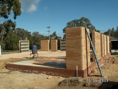 Bob and Judy Jackson have recently completed their Maharishi Vastu, rammed earth home in the hills of Western Australia, outside of Perth. The home has a unique character and style with the natural earth colors standing out in the leafy suburban surroundings. This is the second Maharishi Vastu rammed earth home to be built in Western Australia.